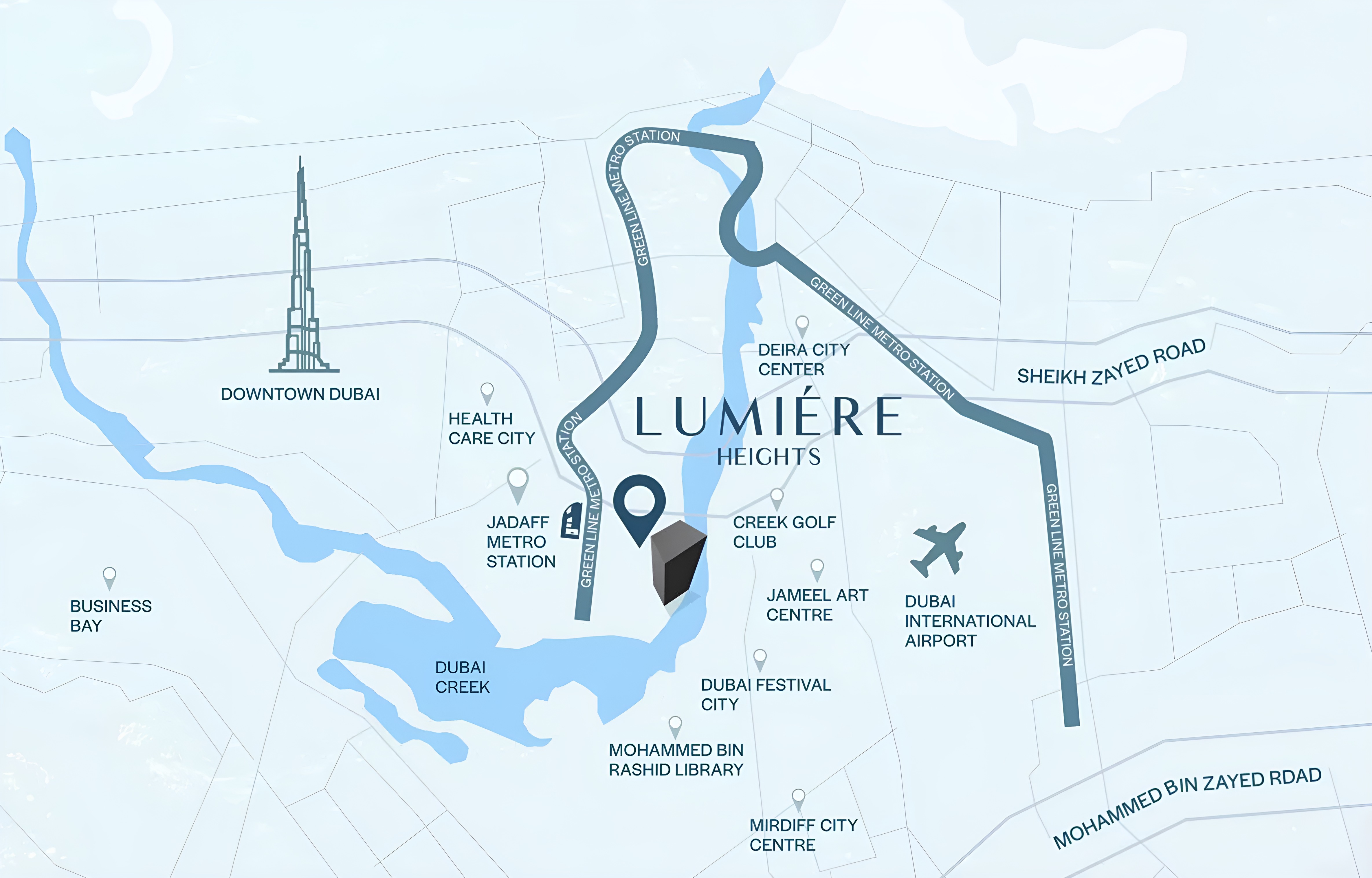 Discover an elevated standard of waterfront living at a distinguished new address in Dubai's captivating Culture Village, Al Jaddaf. Lumiere Heights, a magnificent 10-story residential tower meticulously crafted by AJG Jaddaf Real Estate Development, redefines urban sophistication. This architectural marvel offers an unparalleled lifestyle, promising breathtaking panoramic vistas of Dubai Creek and the serene Wildlife Sanctuary, seamlessly blending contemporary design with a rich cultural tapestry.