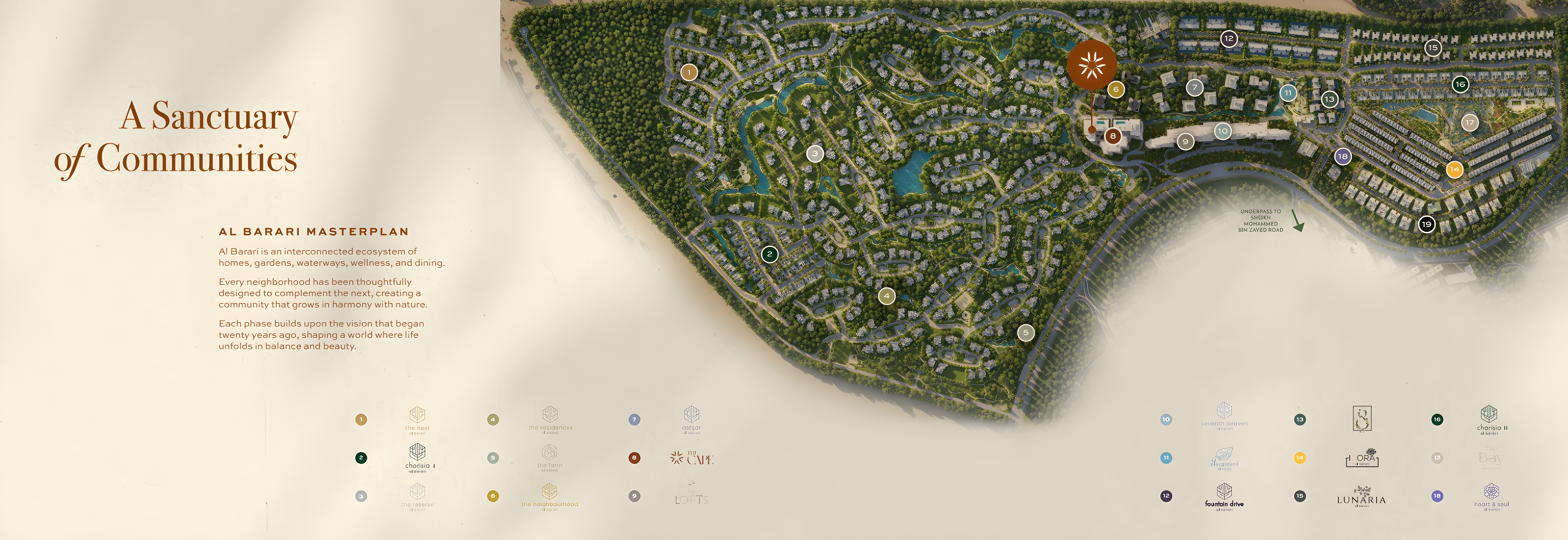 Nestled at the heart of the iconic Al Barari community, this development offers residents an extraordinary blend of secluded calm and unparalleled accessibility. Experience the peace of lush surroundings and vast open spaces, while remaining effortlessly connected to Dubai's vibrant business districts, premier leisure destinations, and world-class infrastructure. It's an address crafted for those who desire a private sanctuary without sacrificing the conveniences of urban life.