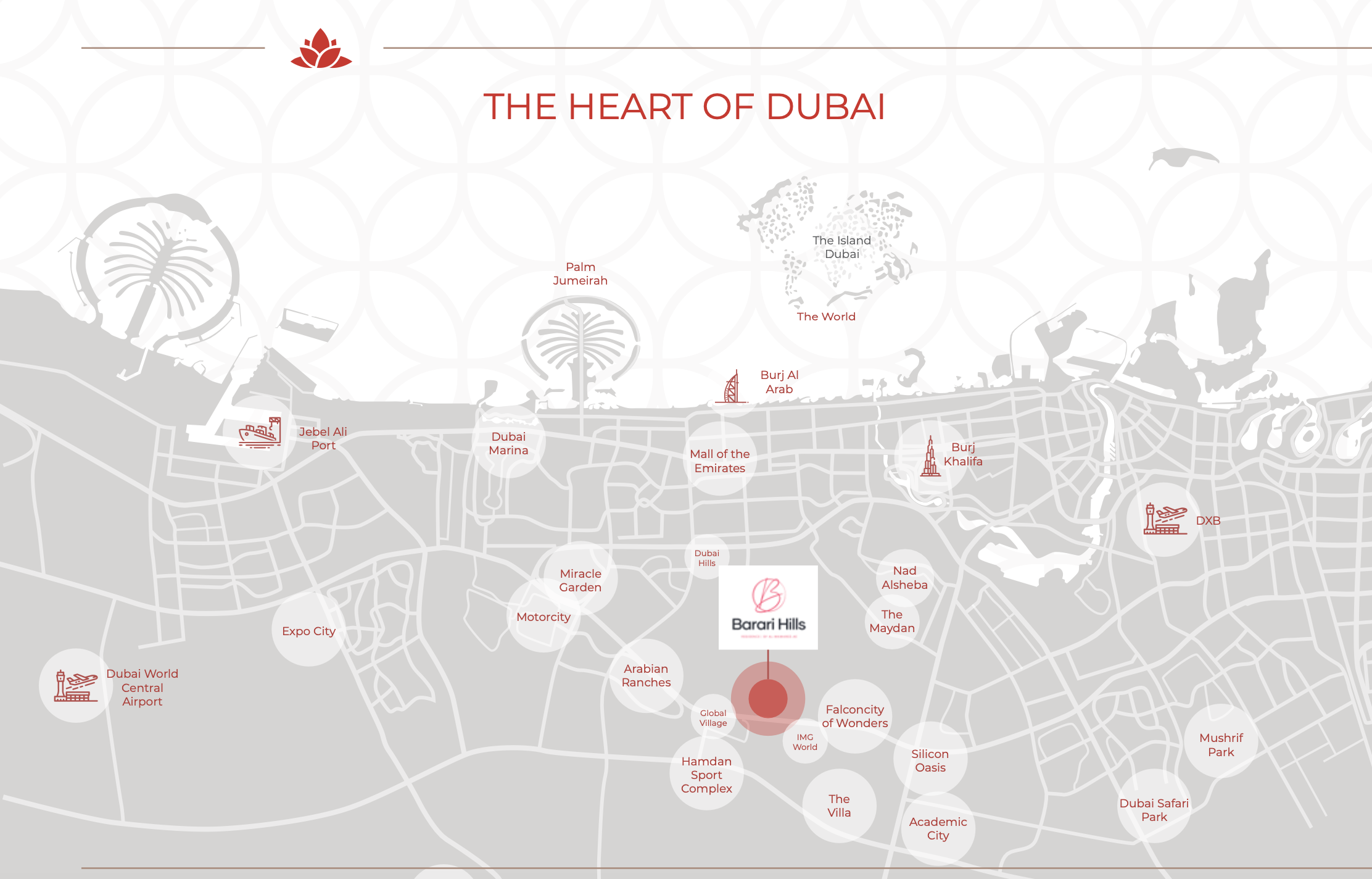 Commanding a prime position within the bustling Barari Hills locale, this development places residents at the nexus of urban convenience. Enjoy seamless connectivity to the emirate's essential road networks, prominent business districts, and celebrated cultural attractions. This strategic setting ensures that Dubai's myriad opportunities are always within easy reach, blending cosmopolitan vibrancy with a tranquil home environment.