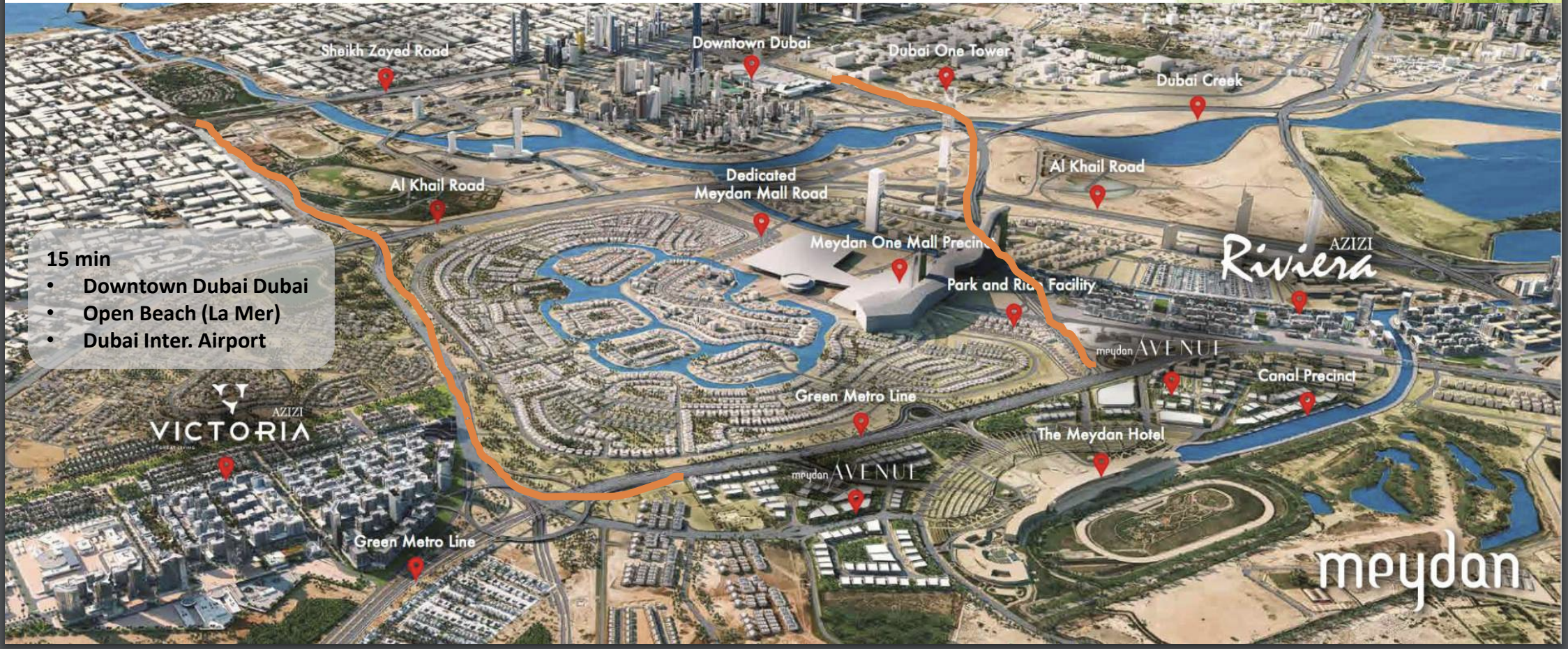 Nestled strategically within the ambitious Meydan project, Azizi Park Avenue places residents at the epicentre of Dubai's visionary growth. Conceived by the foresight of His Highness Sheikh Mohammed Bin Rashid Al Maktoum, Meydan has transcended its origins as a global equestrian landmark to become a burgeoning hub for international commerce, elite sports, and sophisticated residential experiences. Living here means seamless access to major attractions and thriving business districts, positioning you at the forefront of the emirate's exciting future.