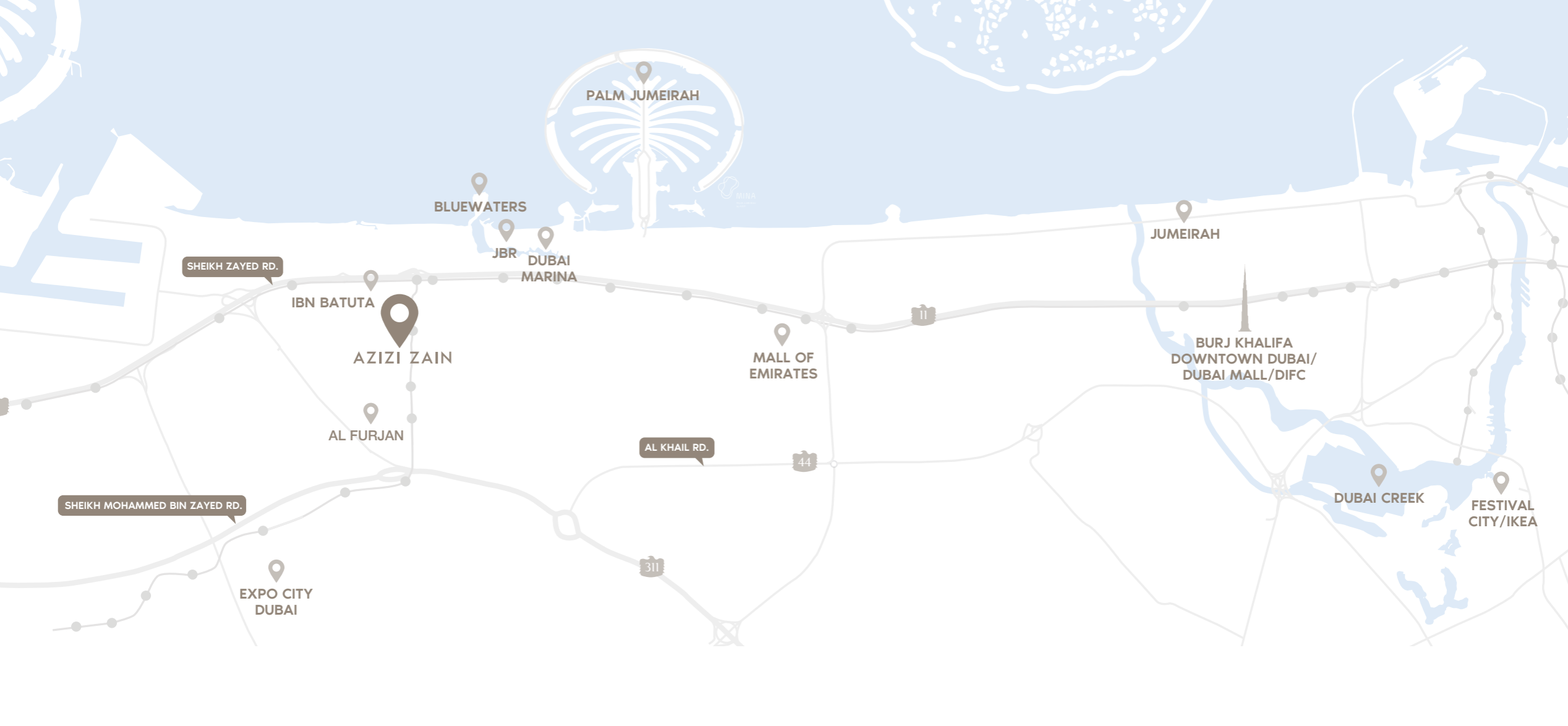 Strategically positioned within the dynamic Al Furjan district, Azizi Zain benefits immensely from this master-planned community's unique blend of tranquility and connectivity. Originally conceived by Nakheel, Al Furjan offers a serene, family-friendly environment while ensuring effortless access to Dubai's principal thoroughfares, Sheikh Zayed Road and Mohammed Bin Zayed Road. This coveted location means residents enjoy seamless commutes to the city's bustling business districts, renowned leisure attractions, and essential daily conveniences.