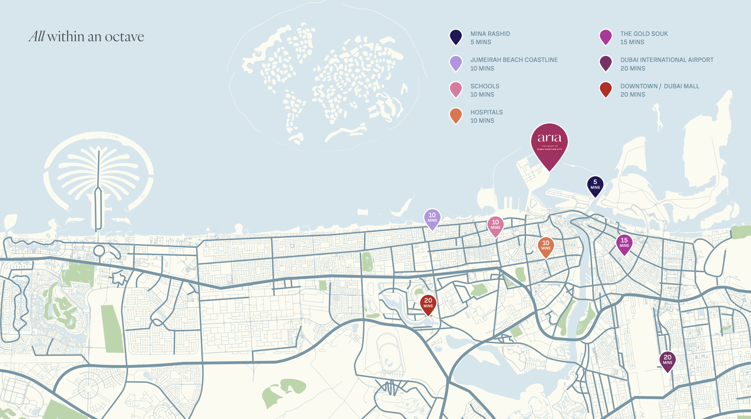 Strategically positioned, this development offers residents the unique advantage of coastal serenity alongside effortless connectivity to the emirate’s bustling core. Enjoy remarkably short commutes, placing you just two minutes from Mina Rashid and ten minutes from pristine beaches. Essential city hubs like Downtown Dubai are a mere fifteen-minute drive away, while Dubai International Airport can be reached in approximately twenty minutes. Its direct access to Sheikh Zayed Road ensures swift journeys to vital business and financial districts, including DIFC, Business Bay, and Zaabeel.