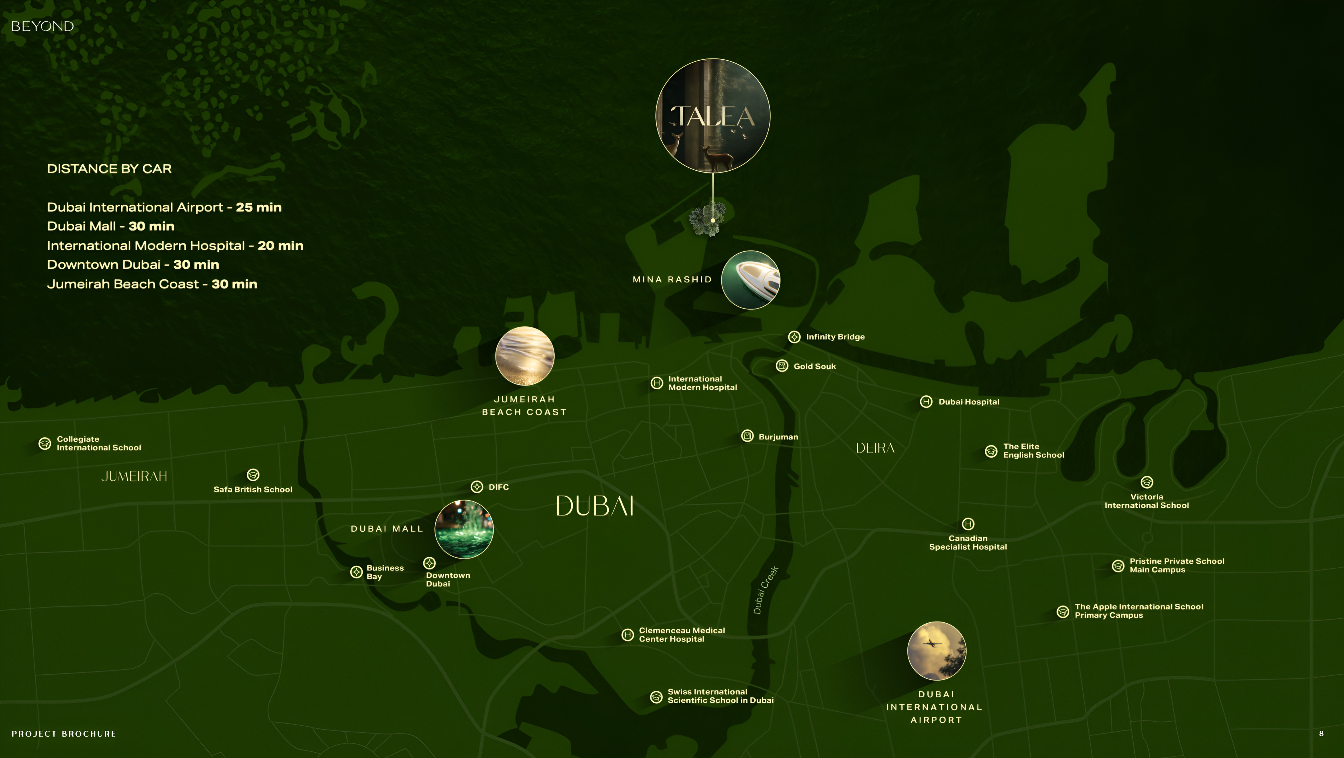 Strategically positioned between the dynamic Port Rashid and the serene expanse of the Arabian Gulf, Talea offers a unique sanctuary. Its prime address within Dubai Maritime City, an area rapidly emerging as one of the emirate's most sought-after waterfront destinations, places residents at the heart of both maritime heritage and futuristic urban design. The innovative Forrest District concept cultivates a verdant oasis, fostering sustainable living amidst the vibrant cityscape, ensuring direct access to Dubai's evolving shoreline and scenic coastal promenade. From here, effortlessly connect to the city’s premier commercial hubs, cultural attractions, and leisure hotspots, all while enjoying a peaceful retreat.
