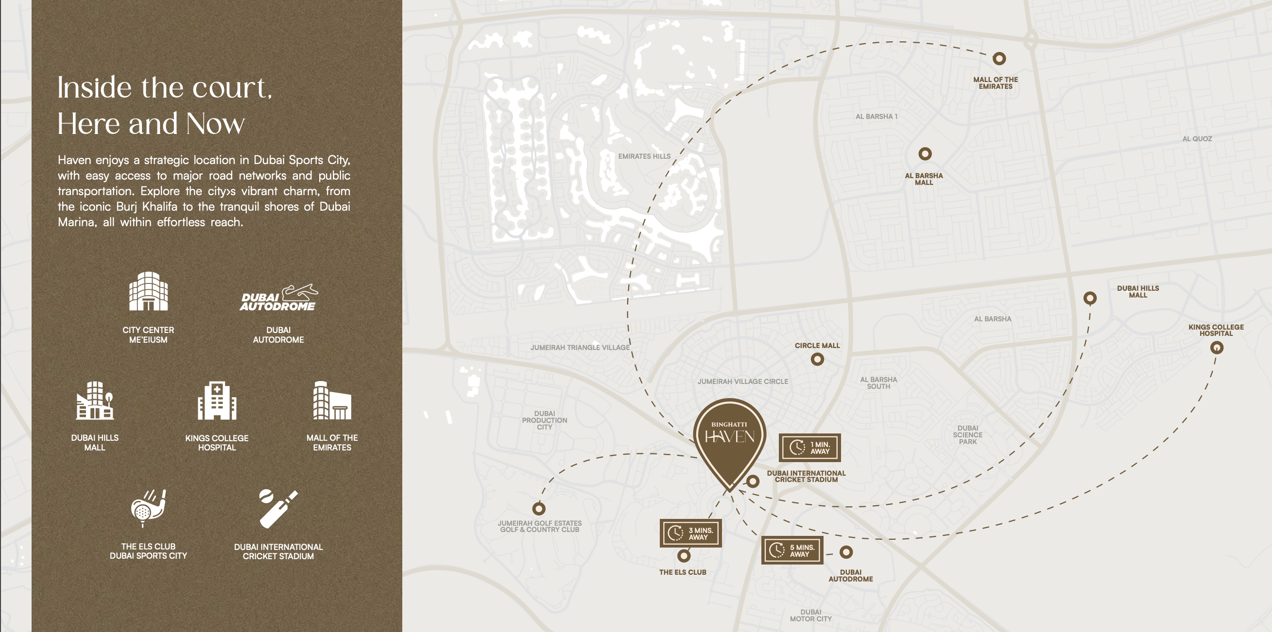 Positioned at the vibrant core of Dubai Sports City, residents of Binghatti Haven benefit from exceptional connectivity and a lifestyle rich in opportunities. Enjoy swift access to Dubai's primary road networks, placing iconic destinations like the bustling Dubai Marina, the cultural hub of Downtown Dubai, and the serene Jumeirah beaches just a short drive away. Beyond its strategic links, Dubai Sports City itself is a thriving microcosm, celebrated for its extensive sporting facilities, diverse recreational options, and a lively atmosphere. A spectrum of dining, retail, and entertainment venues are all conveniently within reach, ensuring every need is catered for right at your doorstep.