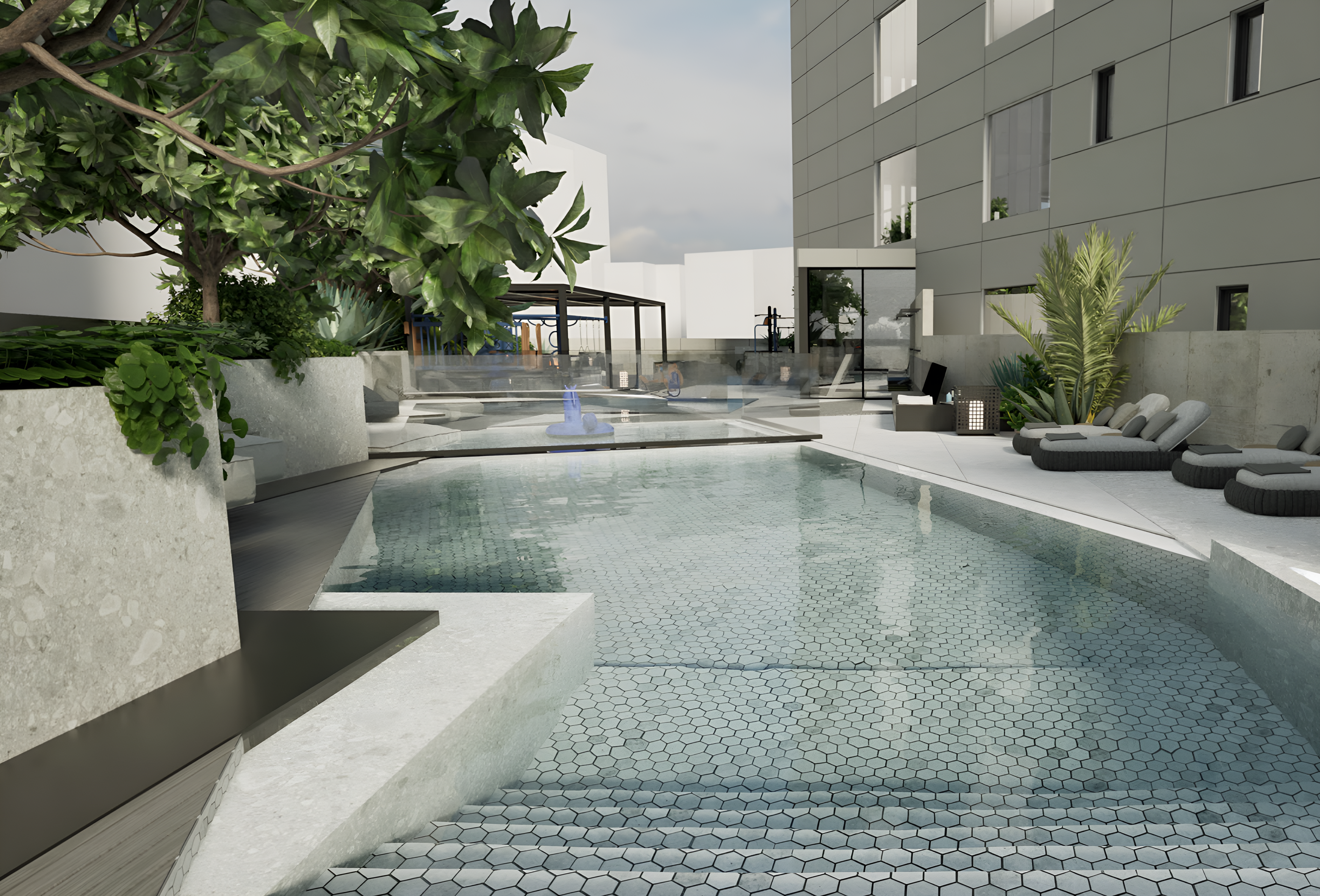 The residences themselves are a testament to meticulous craftsmanship, presenting a refined collection of studios, 1-bedroom, and 2-bedroom apartments. Each home is conceived to maximize natural light and expansive space, incorporating intuitive smart home features that streamline daily life. The building's striking geometric façade contributes to its architectural appeal, while interiors radiate luxury through premium finishes, including exquisite Italian marble adorning the common areas.