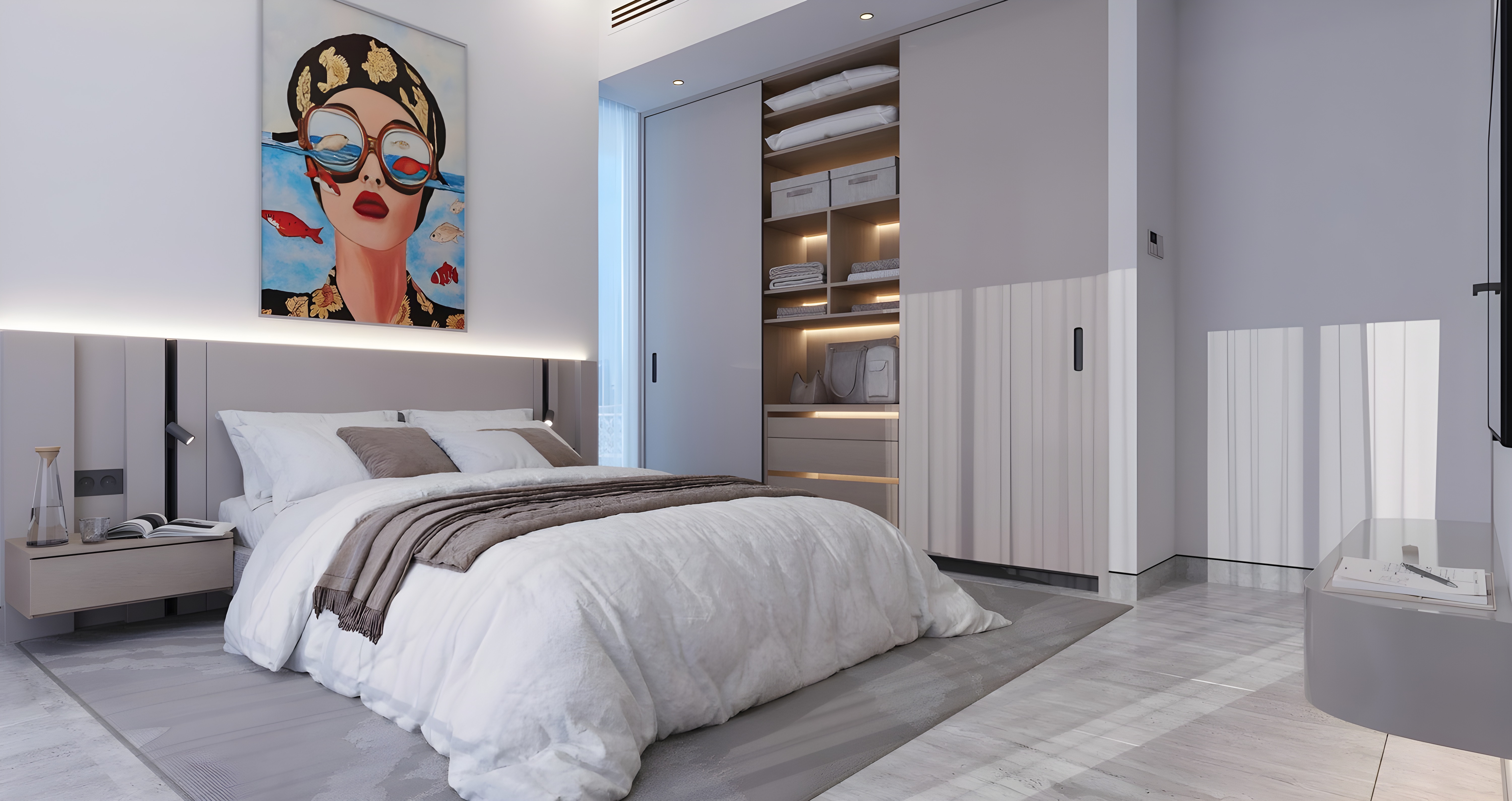The architectural brilliance of the tower commands attention with its graceful vertical form, defined by sleek lines and expansive, floor-to-ceiling glass facades. These design elements ensure each residence is bathed in natural light and affords captivating panoramic views of the serene lagoon. Inside, meticulous design meets practical sophistication. Intelligently crafted layouts maximize every square meter, complemented by premium materials, cutting-edge smart home technologies, and a sophisticated neutral palette enhanced with soft textures, creating an atmosphere of understated luxury. For an elevated experience, select units feature private balconies equipped with integrated jacuzzis, offering an exclusive personal sanctuary.