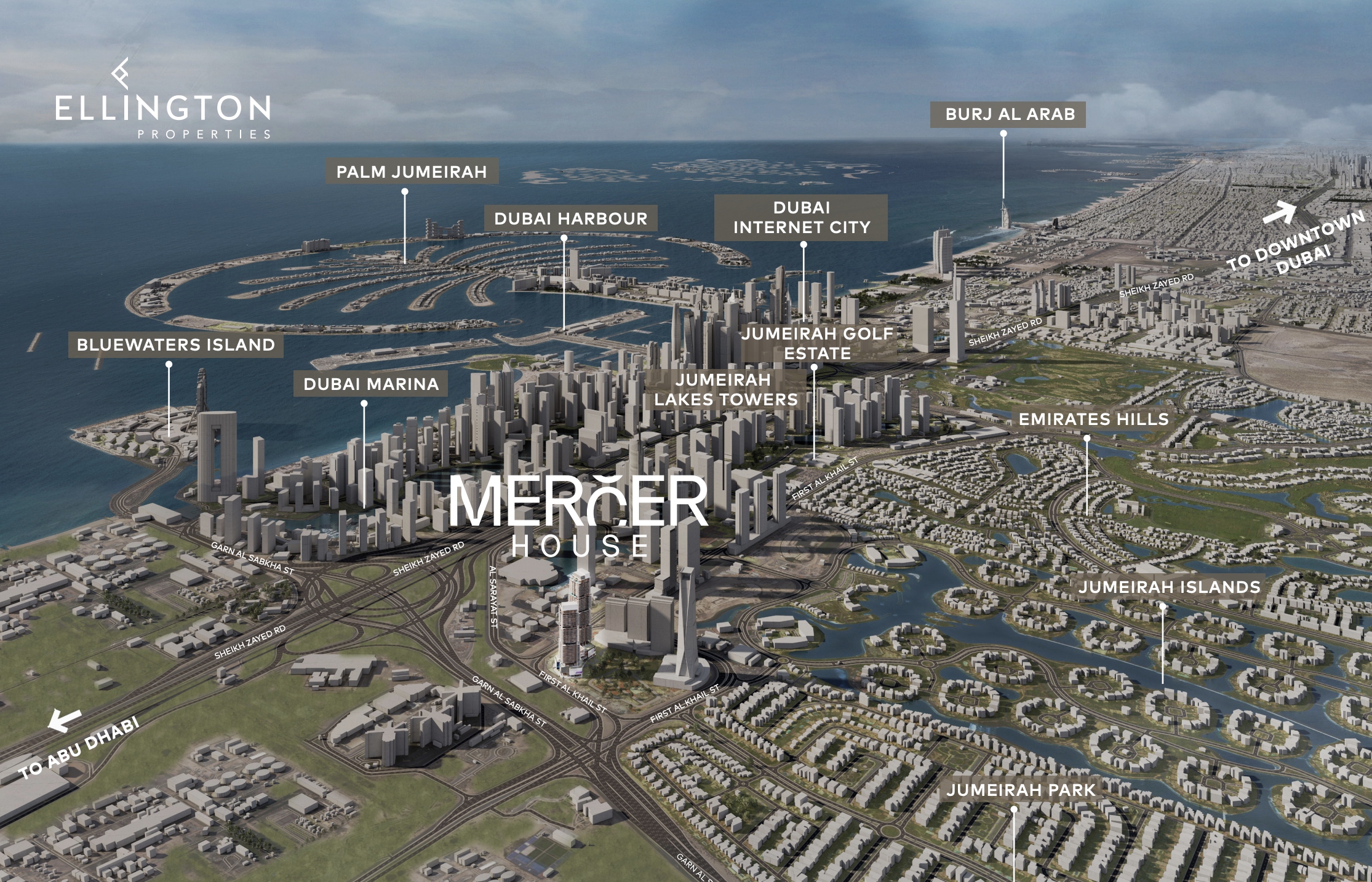 Mercer House commands an enviable position, ensuring residents enjoy both the energetic pulse of a dynamic community and effortless access to Dubai's most crucial destinations. Its proximity to Sheikh Zayed Road provides rapid connections to the iconic Dubai Marina waterfront, the dazzling landmarks of Downtown Dubai, and the bustling financial hub of Business Bay, all just minutes away. Global connectivity is also assured with Dubai International Airport within easy reach, complemented by excellent public transport links and a wealth of premium dining, shopping, and leisure facilities set amidst beautifully manicured landscapes right on your doorstep.