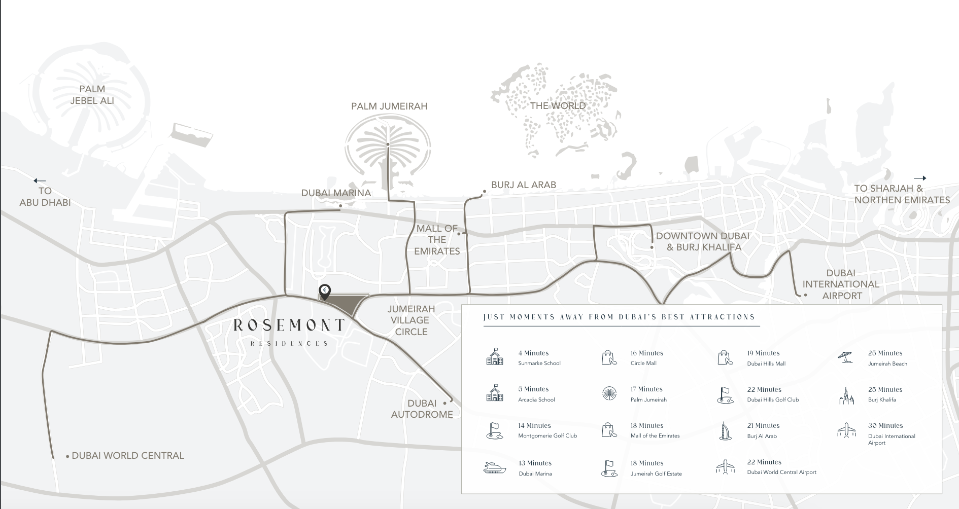 Strategically situated within JVT, this prime location affords unparalleled connectivity across Dubai. Residents benefit from effortless routes to major road networks, placing the city's most iconic destinations within easy reach. Educational excellence at Sunmarke School, world-class leisure at Montgomerie Golf Club, and the vibrant dining and entertainment hubs of Dubai Marina are mere moments away. Furthermore, major attractions such as Mall of the Emirates, the iconic Palm Jumeirah, and the majestic Burj Khalifa are all just a short, convenient drive, ensuring the best of Dubai is always at your fingertips.