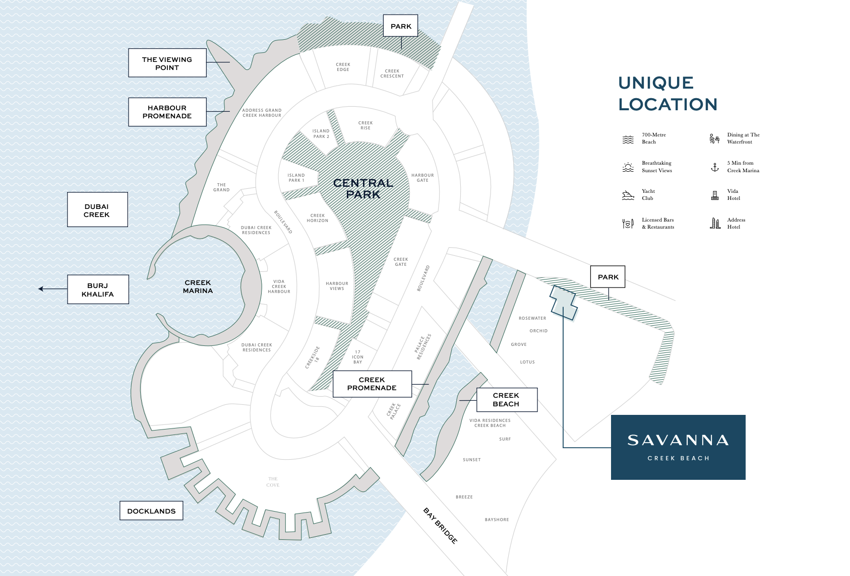 Beyond the immediate coastal tranquility, Savanna boasts unparalleled connectivity to Dubai's most dynamic hubs. A swift drive transports you to the vibrant energy of Downtown Dubai, home to iconic landmarks, world-class dining, and entertainment options. Additionally, convenient access to Creek Island expands your leisure and culinary horizons, placing a diverse array of experiences within easy reach. This is a thoughtfully conceived, highly walkable community, inviting residents to explore its charming promenades set against breathtaking waterfront vistas.