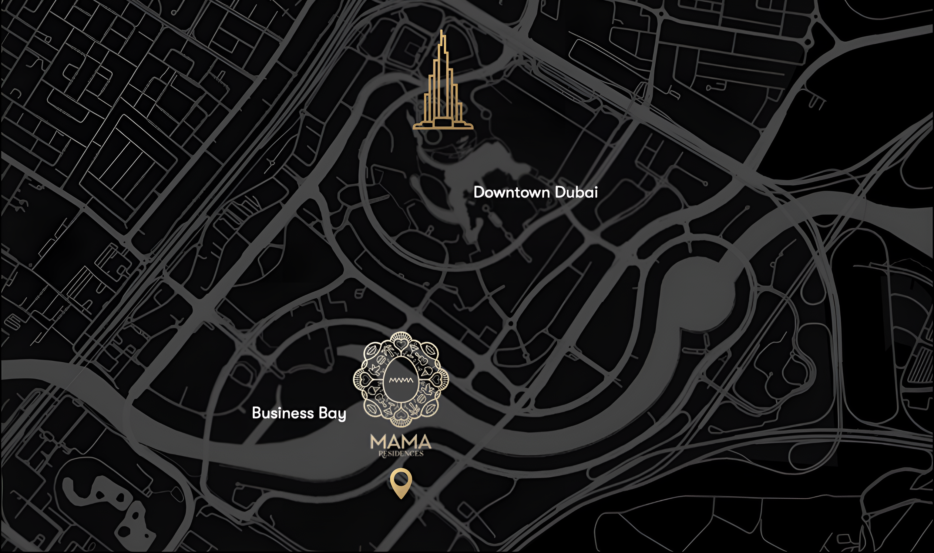Strategically situated within the dynamic core of Dubai's Business Bay, Mama Residences boasts superb connectivity and captivating panoramas. Residents are treated to inspiring views, encompassing the grandeur of the Burj Khalifa, the tranquil expanse of the Dubai Water Canal, and the electrifying Downtown Dubai cityscape. Its coveted address ensures convenient access to key financial districts, premier entertainment destinations, and an abundance of gastronomic and retail experiences, placing you at the vibrant pulse of the city.