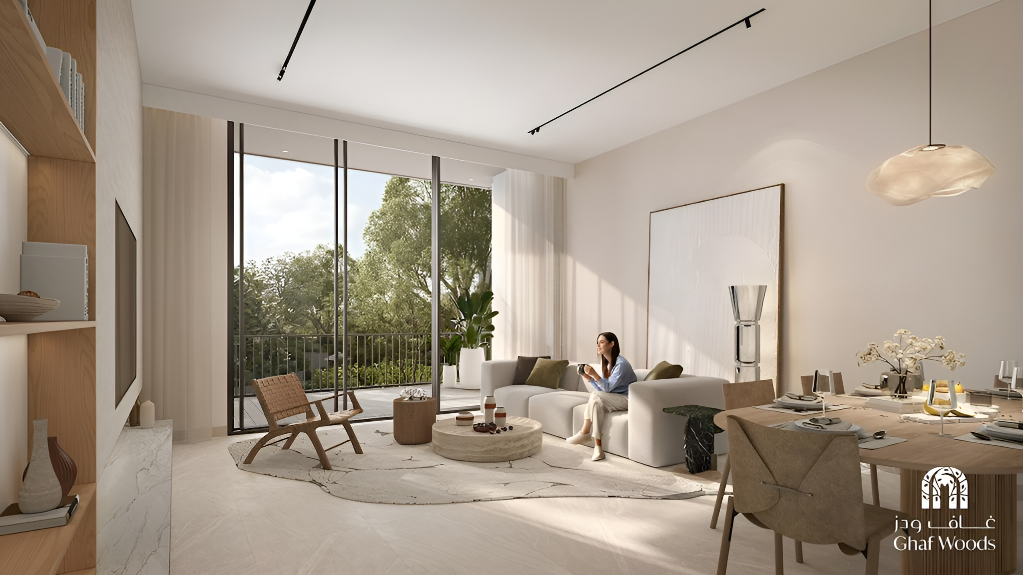 The development encompasses 324 impeccably crafted units, distributed across three elegantly conceived buildings, each optimized for contemporary living. Prospective homeowners can select from a diverse range of layouts, including chic one and two-bedroom apartments, perfect for modern urbanites or small families. More spacious two-bedroom configurations come complete with a dedicated maid's room, while expansive three-bedroom residences offer generous living areas. Crowned by opulent penthouses, these exclusive abodes command breathtaking, sweeping vistas of the verdant Ghaf Woods, promising an elevated residential statement. Every home features bright, open-plan interiors adorned with sleek finishes, maximizing natural light and creating an inviting atmosphere.