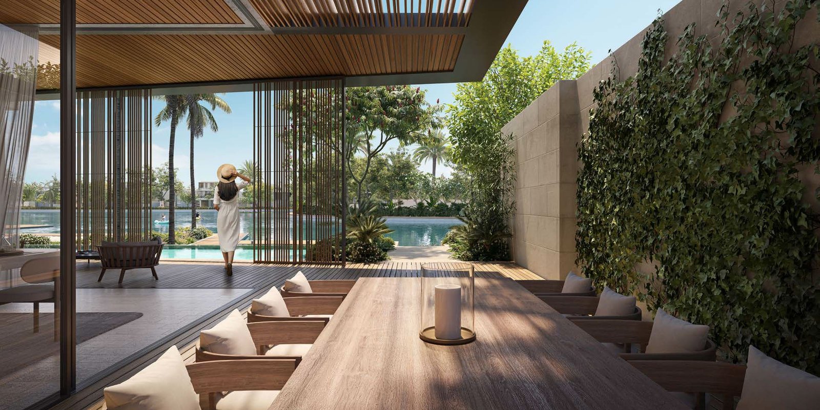 Alternatively, discover the serene elegance of the four Water Bungalows. These resort-inspired four-bedroom villas provide generous interiors, private enclosed gardens perfect for secluded relaxation, and unique indoor garden courts that masterfully merge interior comfort with the beauty of the outdoors. Every single residence boasts a dedicated rooftop lounge and terrace, presenting breathtaking vistas of the shimmering crystal lagoon and the verdant landscapes that define the community.