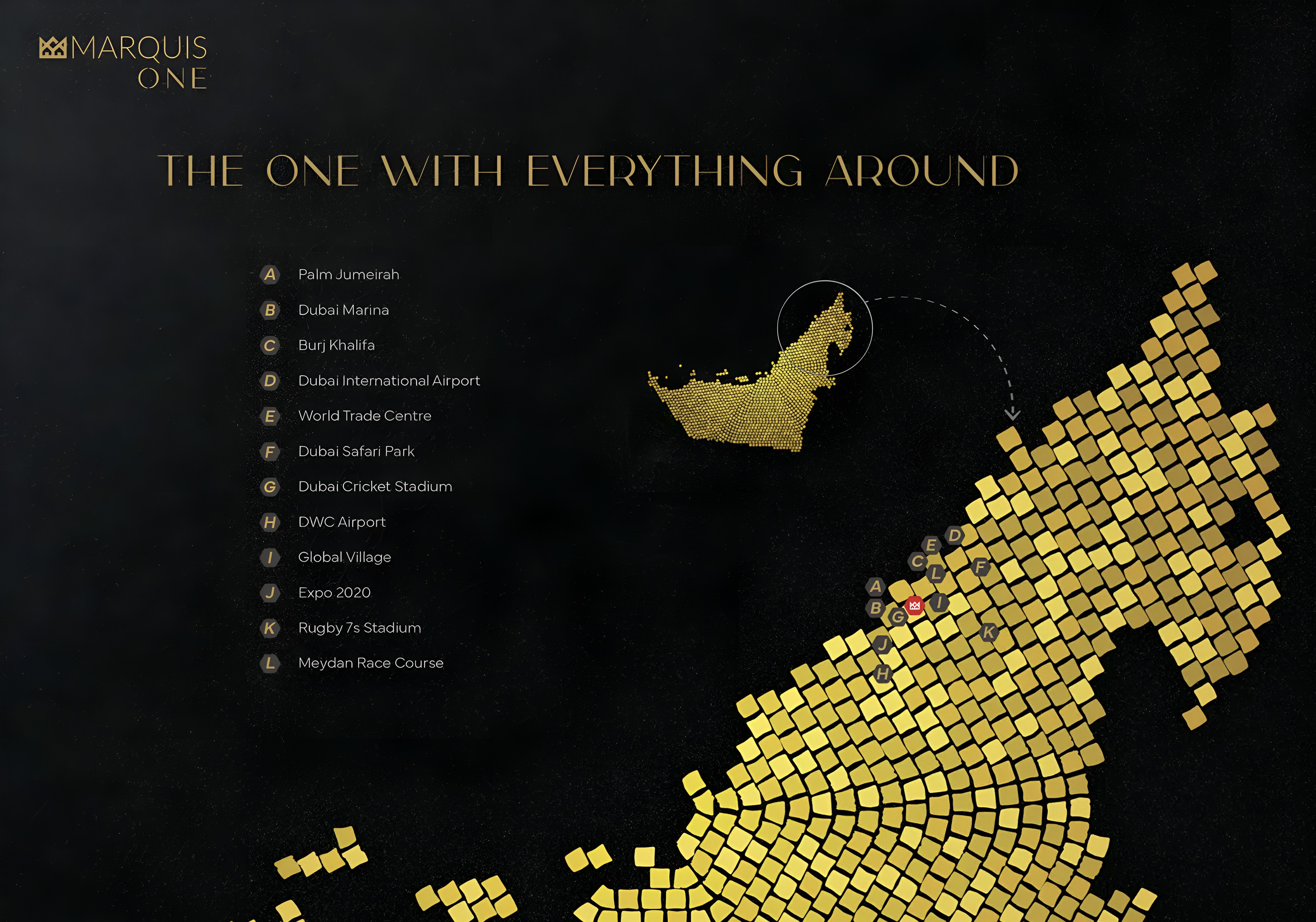 This residential masterpiece enjoys an enviable location at the heart of Arjan, ensuring effortless access to Dubai's most celebrated attractions and essential services. Nature and adventure are moments away, with Dubai Miracle Garden and Butterfly Garden just a three-minute drive. For thrill-seekers, IMG Worlds of Adventure and Global Village can be reached in a mere seven minutes. Business and retail hubs, including the iconic Mall of the Emirates, are approximately 15 minutes away, complemented by excellent proximity to leading international schools and top-tier healthcare facilities.
