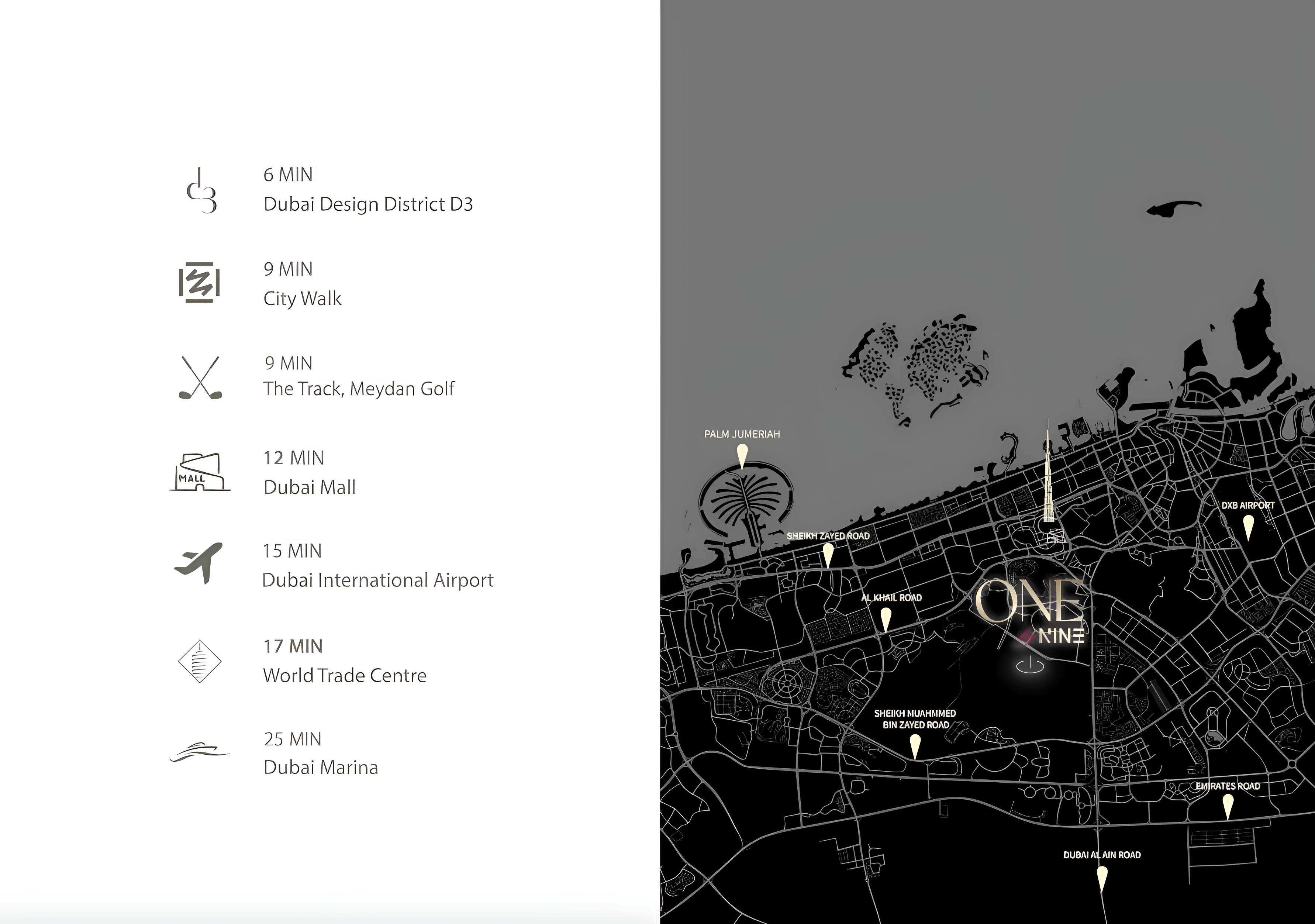 Nestled within a quiet residential enclave, residents will enjoy a serene escape while remaining intrinsically connected to Dubai's pulse. Its enviable positioning offers swift access to vital transport links such as Ras Al Khor Road and Al Ain Road, ensuring major business hubs, entertainment venues, and leisure attractions are just a short drive away. "One By Nine" perfectly balances a quiet home environment with effortless citywide reach.
