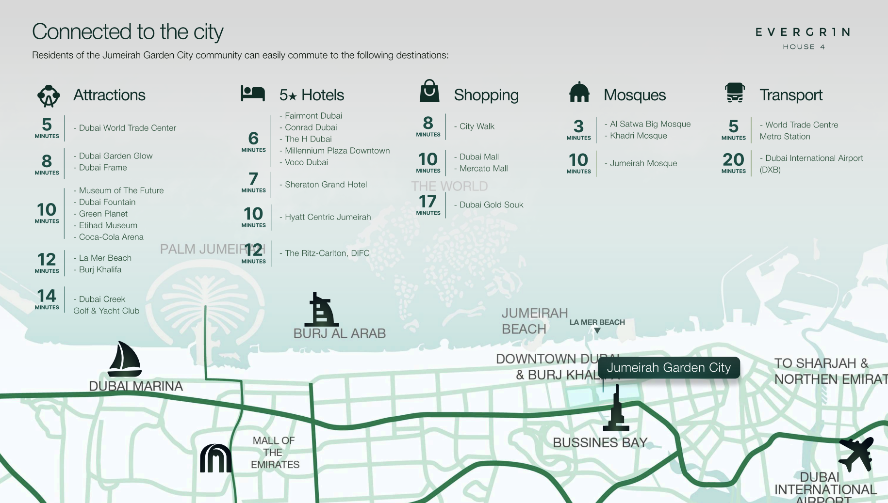 Strategically positioned, Evergr1n House 4 boasts an exceptional central location, promising unparalleled convenience and a vibrant lifestyle. Its close proximity to Sheikh Zayed Road provides effortless access across Dubai, placing you mere minutes from the exhilarating energy of Downtown Dubai, the picturesque allure of Dubai Marina, and the global connectivity of Dubai International Airport. The surrounding area presents a harmonious blend of urban amenities and verdant spaces, with top-tier schools, prominent universities, and premier shopping and retail destinations all within easy reach – making it an ideal choice for discerning professionals, expanding families, and astute investors alike.