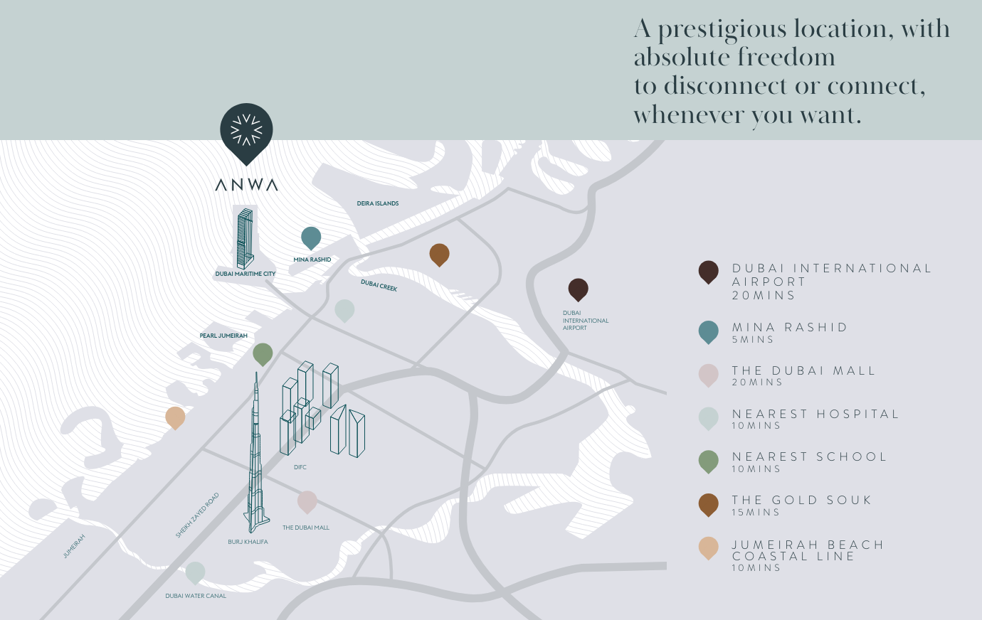 Anwa Phase 2 occupies a prime position within Dubai Maritime City, offering residents the perfect fusion of urban convenience and tranquil coastal charm. Enjoy effortless connections to Dubai’s most celebrated destinations, including the bustling energy of Downtown Dubai, the world-class shopping at The Dubai Mall, and the dynamic leisure offerings of Jumeirah Beach Residence. Despite this superb connectivity, the community remains a peaceful sanctuary, providing a welcome escape from city life without compromising accessibility. Dubai Maritime City itself is rapidly emerging as a highly sought-after hub for both residency and investment, solidifying Anwa Phase 2’s desirability.