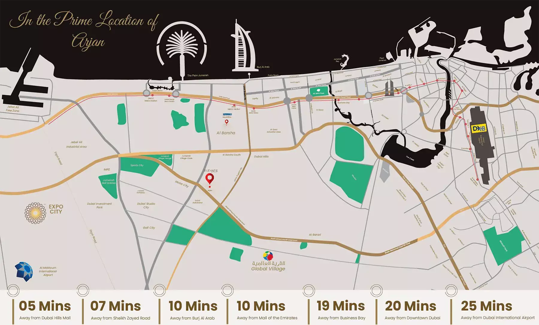 Nestled within the thriving community of Arjan, this address offers residents exceptional access to Dubai's diverse tapestry. Enjoy effortless commutes to major business hubs, renowned entertainment venues, and iconic city attractions, placing the convenience of urban living right at your doorstep. Arjan’s strategic position ensures a balanced lifestyle, connecting you to both bustling corporate centers and tranquil green escapes within minutes.