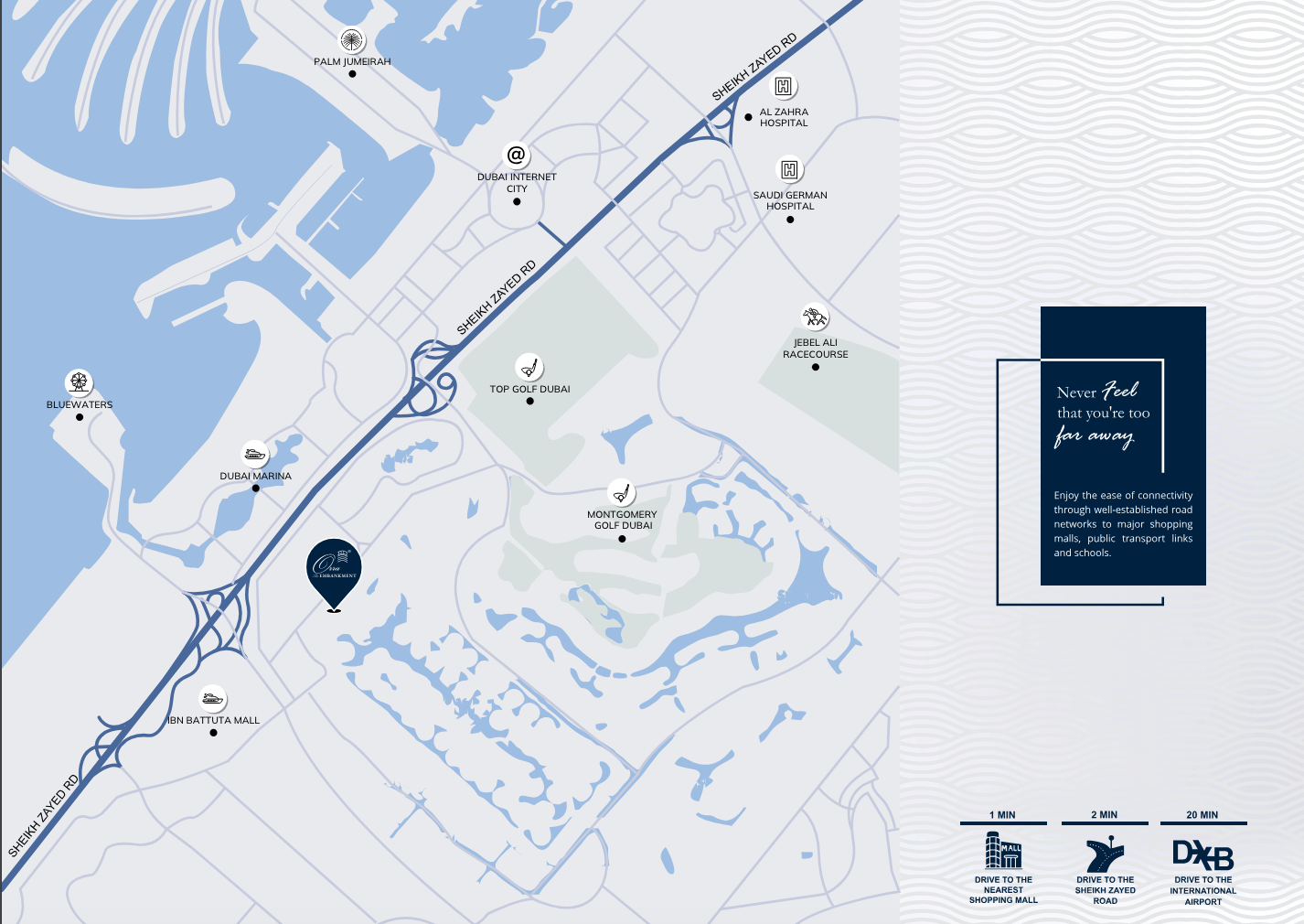 Strategically positioned, Orra the Embankment offers effortless connectivity to the emirate's most iconic attractions and business hubs. Residents will discover a vibrant lifestyle right on their doorstep, with an abundance of recreational cafes, diverse sporting facilities, and tranquil waterfront promenades just moments away. Its enviable address caters perfectly to both families and individuals seeking a rich, connected urban experience amidst Dubai's pulsating energy.
