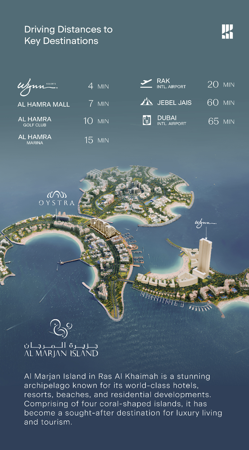 Developed by Richmind and designed by the world-renowned Zaha Hadid Architects, Oystra redefines coastal living through its fluid architectural lines, luxurious interiors, and world-class amenities. With every element crafted by leading global design firms, this project represents a harmonious blend of natural beauty and futuristic design.Prime LocationPositioned on Al Marjan Island, Oystra offers residents an exceptional lifestyle in a rapidly evolving luxury destination. The island is designed for tranquility while remaining connected to city conveniences.45 minutes to DubaiClose to upcoming Wynn Resort and CasinoSurrounded by five-star hotels and leisure facilitiesAmenitiesOystra delivers unmatched facilities, ensuring an elevated lifestyle for every resident.Wellness and FitnessFully equipped gymYoga and meditation studioIndoor and outdoor swimming poolsEntertainment and LeisurePrivate cinemaGames room and billiards loungeChildren's play area and kids' clubRooftop terrace with panoramic viewsDining and SocializingGourmet restaurant and caféPoolside bar and grillPrivate dining roomsResidents' loungeConvenience and Services24/7 conciergeSecure underground parkingElectric vehicle charging stationsStorage facilitiesBusiness center and meeting roomsOutdoor ActivitiesBeach volleyball courtTennis and padel courtsWater sports facilitiesBBQ and picnic areasUnit TypeOystra features a range of spacious apartments tailored to a variety of lifestyles and preferences:1-Bedroom ApartmentsSize range: 843 sqftFeatures: Open-plan living area, balcony with sea view, en-suite bathroom2-Bedroom ApartmentsSize range: 1189 sqftFeatures: Master bedroom with en-suite, guest bedroom, spacious living and dining areas, large balcony3-Bedroom ApartmentsSize: 2116 sqftFeatures: Master suite, two additional bedrooms, maid's room, expansive living areas, wraparound balconyAll units come with high-end finishes, smart home systems, and beautiful sea or landscape views.Delivery DateThe delivery date is February 1, 2029.Starting PriceThe starting price is AED 2586888.Available UnitsUnits from Developer – Apartment1 Bed – 843 sqft2 Beds – 1189 sqft3 Beds – 2116 sqftOystra is more than just a residential address—it's an architectural landmark and a lifestyle statement. From the design genius of Zaha Hadid Architects to the lush landscapes by Cracknell, and the elegance crafted by Hirsch Bedner Associates, every element reflects sophistication. With its stunning seafront location, unmatched amenities, and a strong investment outlook in Ras Al Khaimah’s thriving market, Oystra invites discerning buyers to be part of a truly iconic living experience.This is your opportunity to own a residence that promises architectural brilliance, serene living, and long-term value on the shores of the Arabian Gulf.