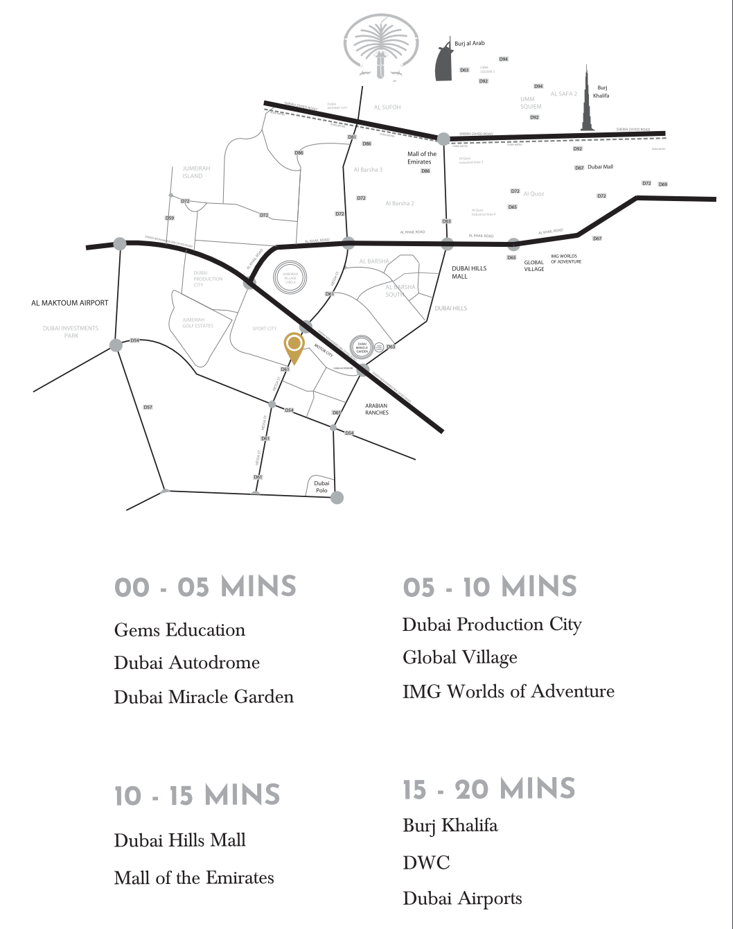 Residents will delight in a locale that perfectly balances serene living with unparalleled urban access. Enjoy effortless proximity to Dubai's most prestigious golf courses, leading healthcare institutions, top-tier international schools, and bustling business districts, including the iconic Downtown Dubai. This prime placement ensures a convenient lifestyle for professionals and families alike, seamlessly connecting work, education, and leisure pursuits.