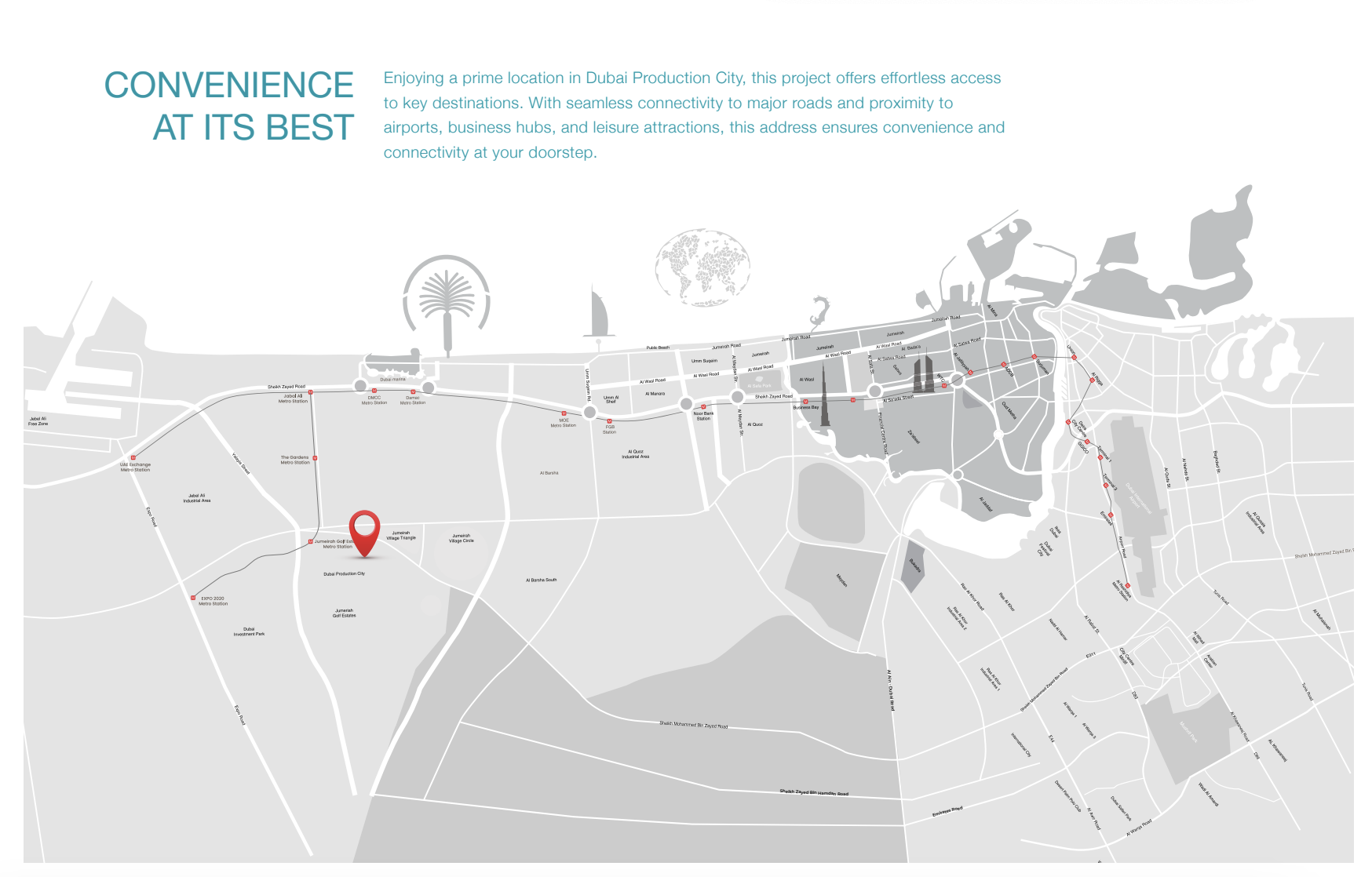 The strategic positioning within Dubai Production City grants residents exceptional connectivity and convenience. Enjoy effortless commutes to key city landmarks, including a swift journey to the iconic Dubai Expo site. Seamless access to Dubai International Airport (DXB) ensures global connectivity, while proximity to Al Maktoum International Airport (DWC) caters perfectly to frequent flyers. Beyond travel, the vibrant surrounding district thrives with a wealth of amenities, from serene parks and trendy cafes to gourmet dining, diverse retail options, top-tier educational institutions, modern healthcare facilities, and bustling business hubs, ensuring a perfectly balanced urban existence.