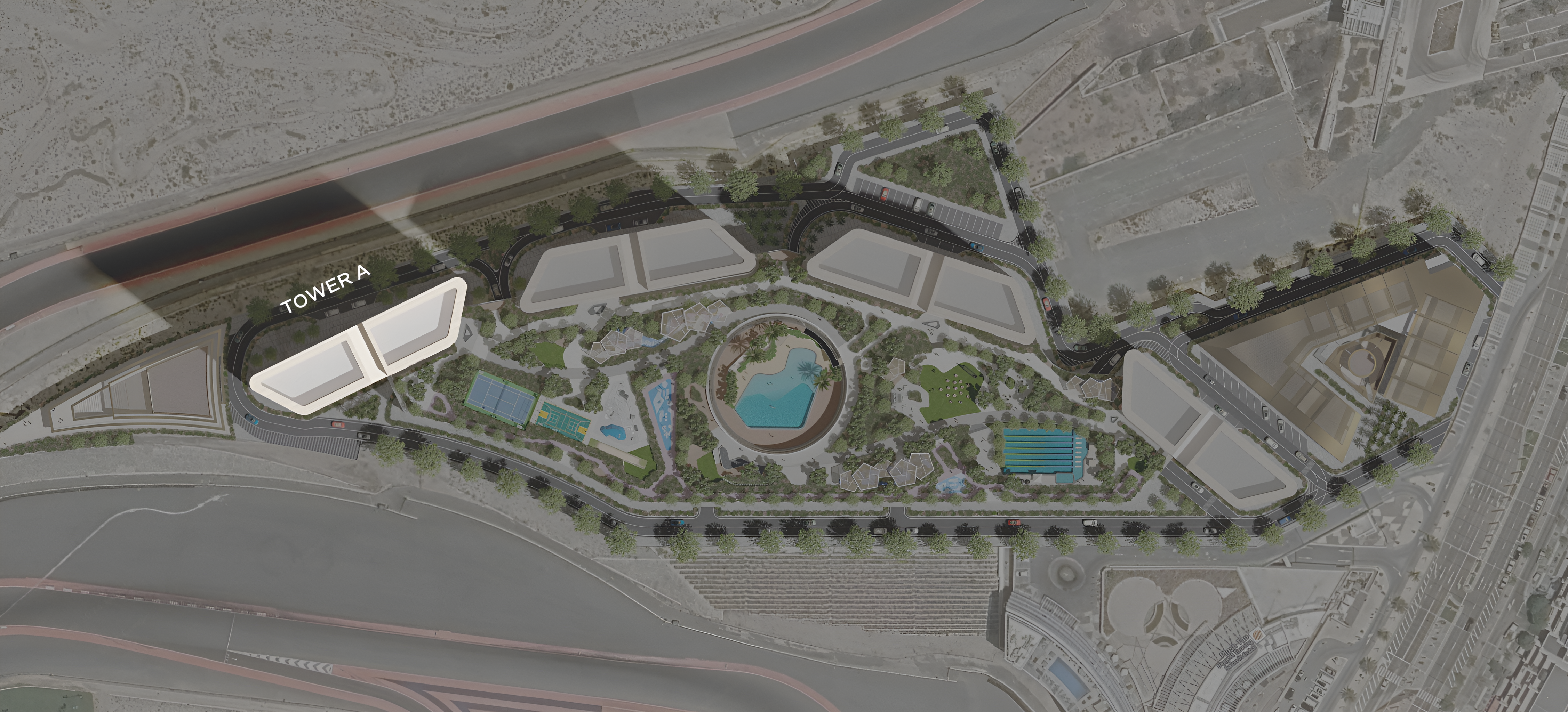 The architectural brilliance of this development is evident in its four elegantly designed towers, which ascend gracefully from a sophisticated, interconnected podium. This thoughtful design fosters a robust sense of community through shared amenities while ensuring each home remains a secluded haven. Every apartment showcases a commitment to exquisite craftsmanship, featuring open-plan living areas, expansive windows, and private balconies that invite an abundance of natural light and offer captivating views, whether gazing upon serene gardens or the iconic racetrack.