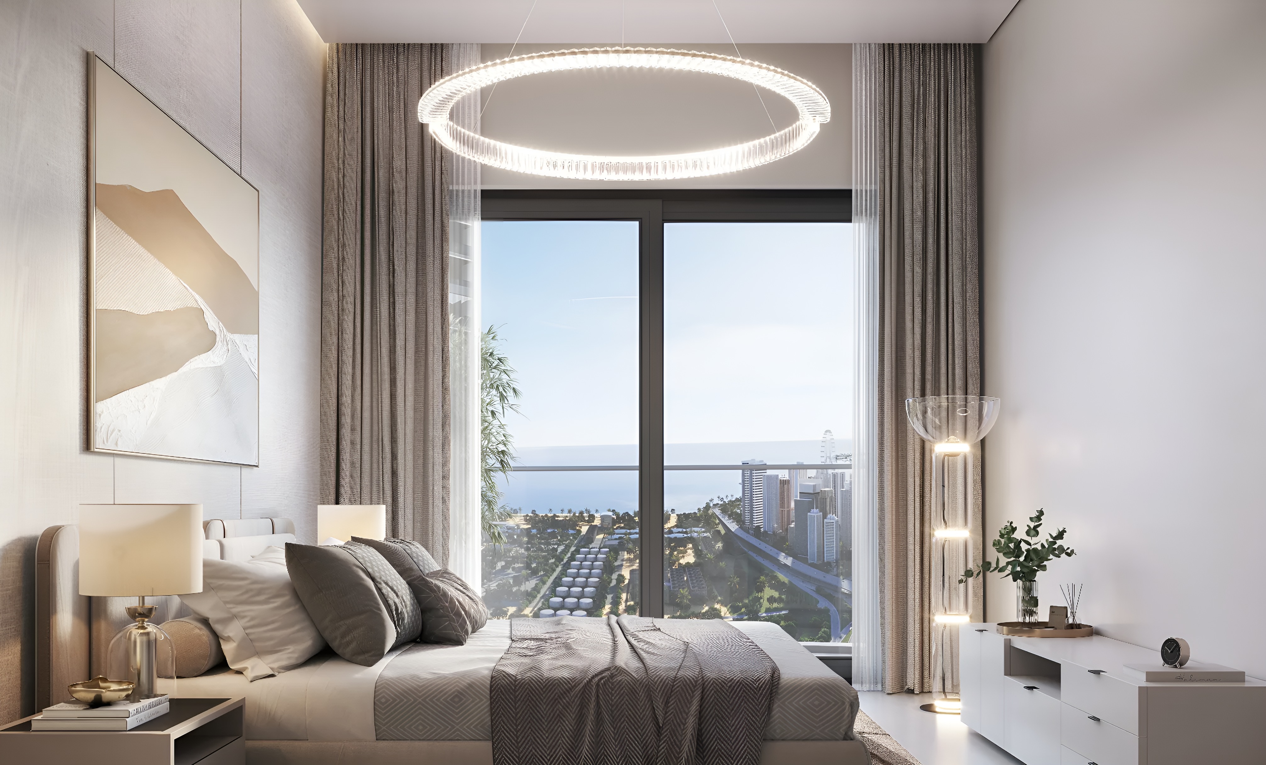 Experience sophisticated design across a thoughtfully curated selection of one and two-bedroom residences. Each home is meticulously crafted to maximize comfort and aesthetic appeal, featuring expansive layouts that invite an abundance of natural light. Floor-to-ceiling windows not only enhance the airy atmosphere but also frame stunning panoramic vistas of Dubai's dynamic skyline, establishing a direct connection between elegant interiors and the captivating urban landscape. Superior finishes, premium materials, and contemporary fixtures elevate every detail, promising a living space that radiates understated luxury.