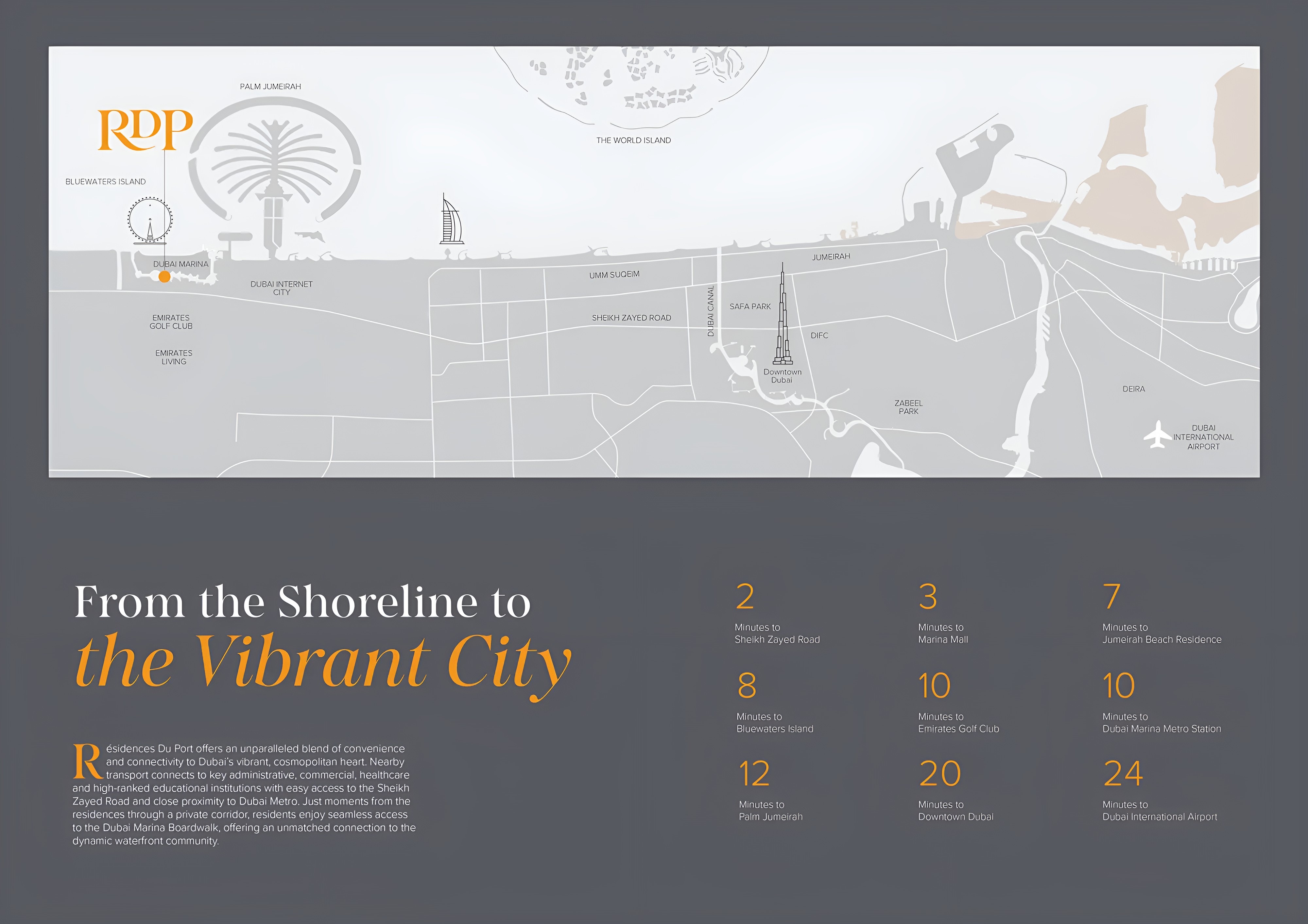 The architectural vision behind Residences Du Port seamlessly blends the sophisticated elegance of the French Riviera with the contemporary grandeur characteristic of Dubai Marina. Each residence is a masterpiece of design, featuring expansive floor-to-ceiling windows that not only invite abundant natural light but also perfectly frame breathtaking views across the marina's glittering waters. Nautical-inspired façades bestow a distinctive, elegant character, while meticulously considered smart layouts prioritise both comfort and practical living. Interiors are defined by modern colour palettes, premium flooring, and high-end fixtures throughout. With state-of-the-art kitchens, indulgent, spa-inspired bathrooms, and private outdoor spaces like terraces or balconies, these homes are truly crafted as luxurious havens.