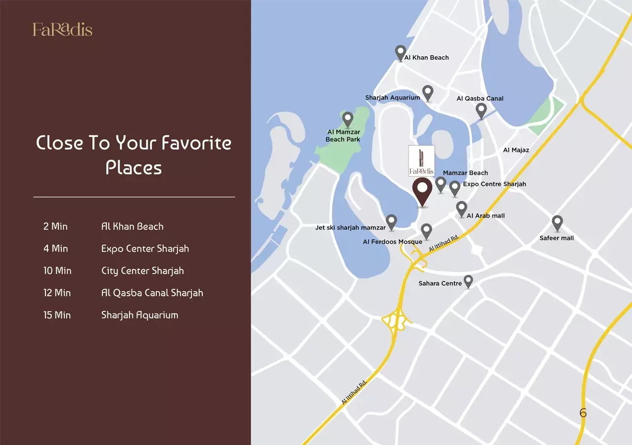 The luxury 50-story Tiger Properties building in Sharjah is called Faradis Tower. Located in the bustling Al Mamzar area, this architectural gem of modern times. Elegantly designed to provide a harmonic blend of comfort, elegance, and contemporary convenience, the tower provides a selection of top class 1, 2, and 3–4 bedroom apartments.Faradis Tower's Prime LocationFaradis Tower is a sophisticated landmark in Dubai's skyline, situated in the busy Al Mamzar neighborhood. For both residents and investors, Al Mamzar is a great option because of its strategic position, which offers quick access to major districts of Sharjah and Dubai. Being close to so many places to eat, shop, and have fun, the region is well-known for its lively lifestyle.AmenitiesSwimming Pool: Unwind with a refreshing plunge while lounging by the sparkling pool.Gym: With cutting-edge exercise equipment, stay in shape and stay healthy.On-Site Restaurants: Savor delicious meals at the tower's reservation-only restaurants.Retail Outlets: Convenient stores located inside the complex.Children's Play Area: Kids can play in fun and safe areas.Community parks: verdant areas for leisurely outdoor activity.Investment OpportunityFaradis Tower is a profitable investment option in addition to being a luxurious place to live. Situated in the heart of the Middle East's booming real estate market, the development offers both a high level of living and financial appreciation.Unit TypesFaradis Tower offers a variety of housing options to cater to different needs and preferences. 1 Bedroom Apartments Size: Starting from 800 sq. ft. 2 Bedroom Apartments Size: Starting from 1,200 sq. ft. 3 Bedroom Apartments Size: Starting from 1,800 sq. ft. 4 Bedroom Apartments Size: Starting from 2,400 sq. ft.Delivery Date and Starting PriceDelivery Date: Q4 of 2026.Starting Price: 1,253,078 AEDFaradis Tower offers a remarkable blend of luxury, convenience, and investment potential, making it an exceptional choice for those seeking a sophisticated lifestyle in Sharjah. With its prime location in the vibrant Al Mamzar area, residents enjoy easy access to key districts in both Sharjah and Dubai, along with a wealth of amenities that cater to modern living, including a swimming pool, gym, retail outlets, and dedicated children's play areas. Whether you are looking for a luxurious home or a lucrative investment, Faradis Tower promises both comfort and growth, making it a standout opportunity in the region's real estate market.