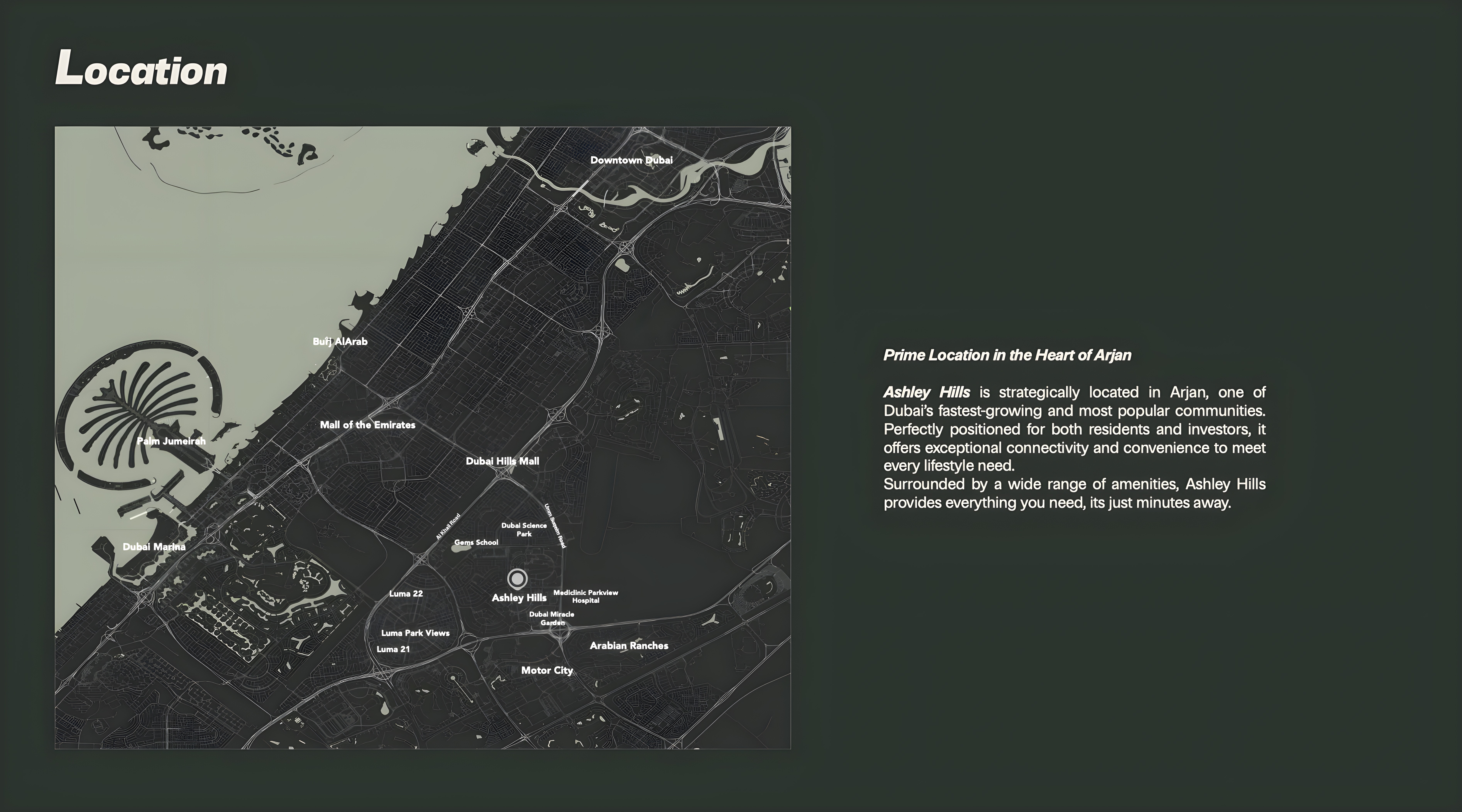 Nestled in Arjan, the Art Gardens community masterfully harmonizes serene residential charm with exceptional connectivity. Residents will benefit from seamless access to Dubai’s expansive road networks, ensuring swift journeys to major business districts, iconic attractions like the Dubai Miracle Garden, and the city's pristine coastline. This strategic position guarantees a peaceful home environment, while keeping the vibrant pulse of Dubai within effortless reach, further enhanced by well-developed local infrastructure and a convenient array of retail, dining, and leisure options just moments away.