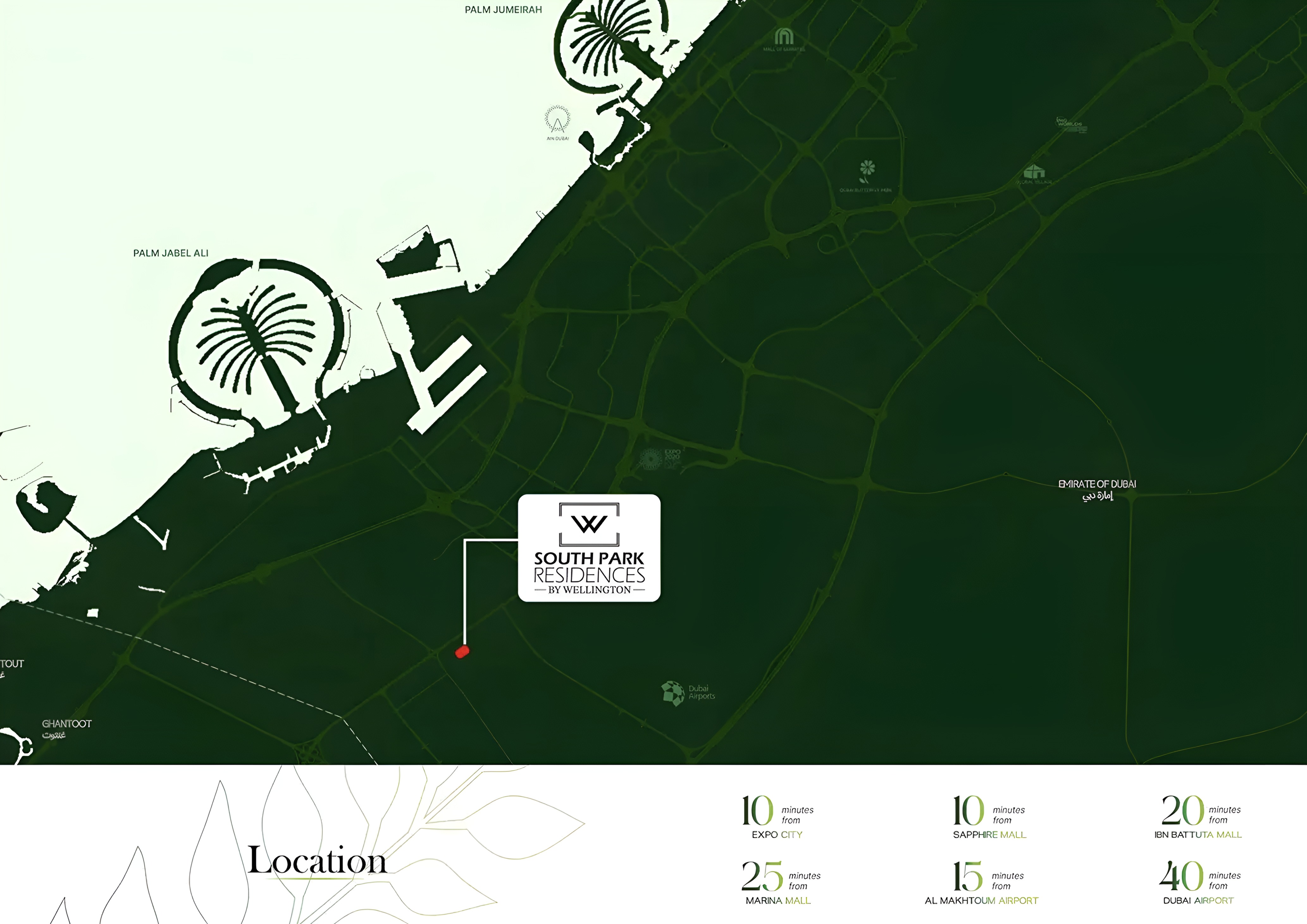 Nestled in the thriving landscape of Dubai South, South Park Residences enjoys a coveted position in an area celebrated for its exponential growth and future vision. Proximity to global gateways like Al Maktoum International Airport and the architectural marvel of Expo City Dubai ensures unparalleled ease for both frequent flyers and those seeking local adventures. Seamless connections to Dubai's extensive road networks place the city's vibrant business hubs, exquisite leisure destinations, and idyllic coastal stretches just a short drive away, perfectly blending metropolitan access with serene living.